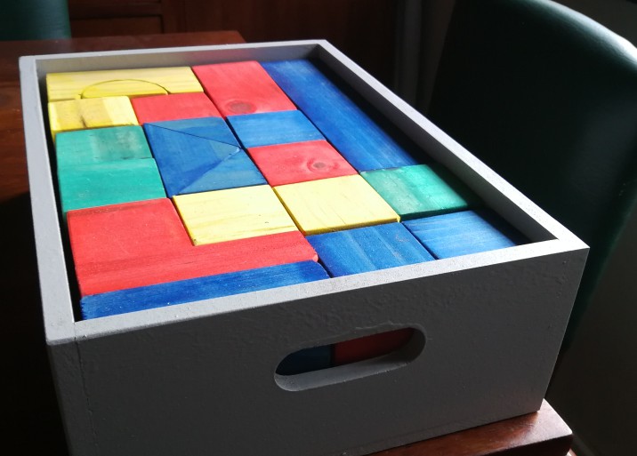 DOUBLE SIDED BLACKBOARD, WOODEN BLOCKS (ALSO AVAILABLE IN A BOX), PLAY BED, PUPPET THEATRE Awesome double sided blackbaord Double sided blackboard in pastel colours 54 different shaped blocks . also available in a wooden box
