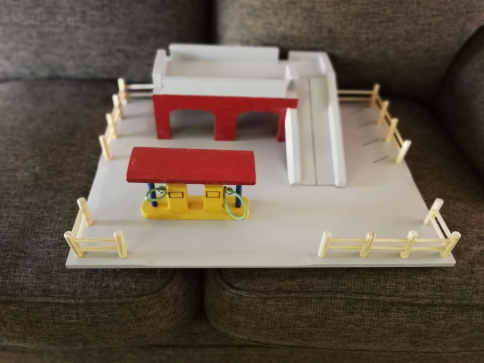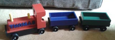 TRAIN, STOVE, WORKBENCH, PETROL PUMP AND BLACKBOARD Workbench, includes 6 wooden tools Petrol tanks, ideal for bike tracks Awesome double sided blackbaord Stove painted in primary colours Chunky train set Petrol garage
